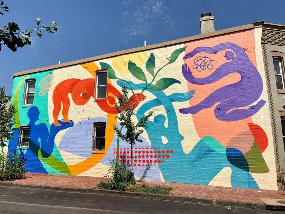 I have had an active mural practice for nearly a decade - I have painted over fifty murals, from my hometown of Washington, DC, to Karachi, Pakistan. I love public art because it is available for nearly anyone to appreciate and enjoy. Painting murals is also just FUN - it is a really enjoyable and rewarding experience to create big artwork. I have had the honor to work with numerous city agencies, schools, nonprofits, and businesses through my mural practice. And I look forward to bringing many more to life in the future!