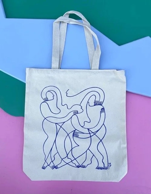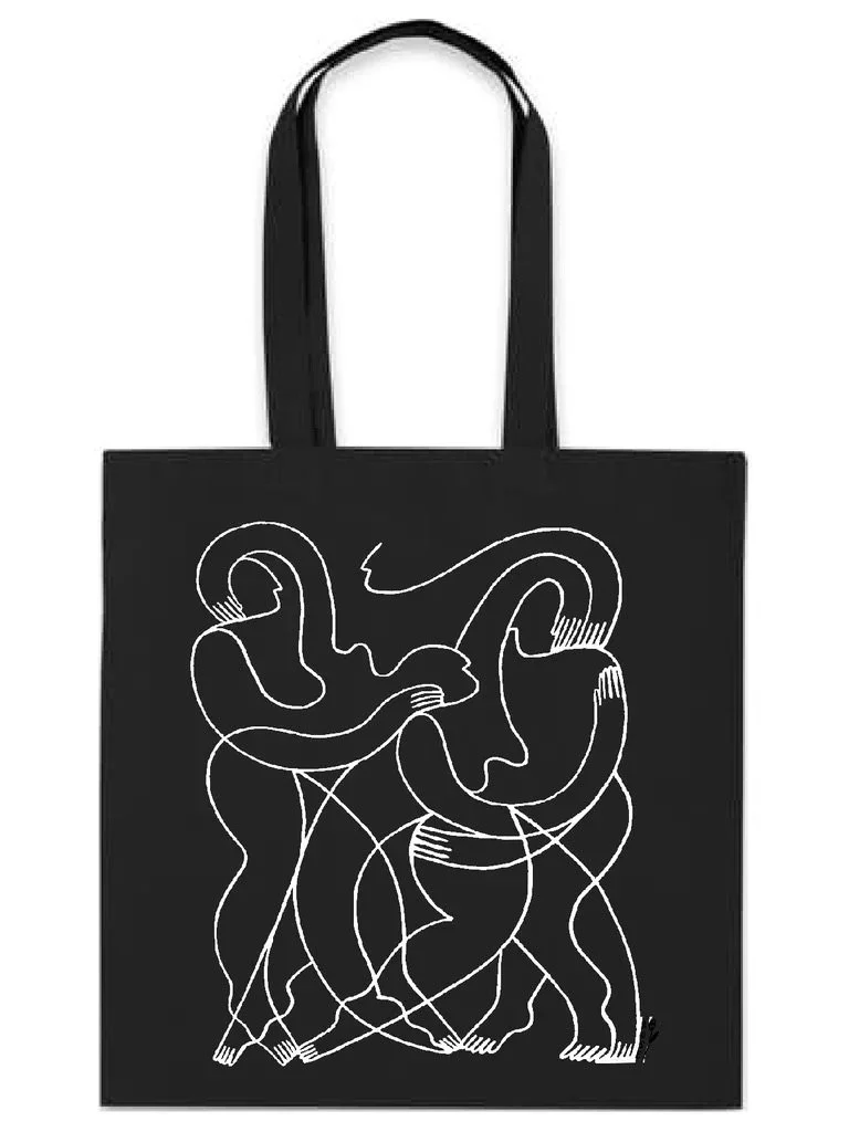 Line Connect Tote (Black) Black tote bag with funky white design. Line connect tote bag on colorful background